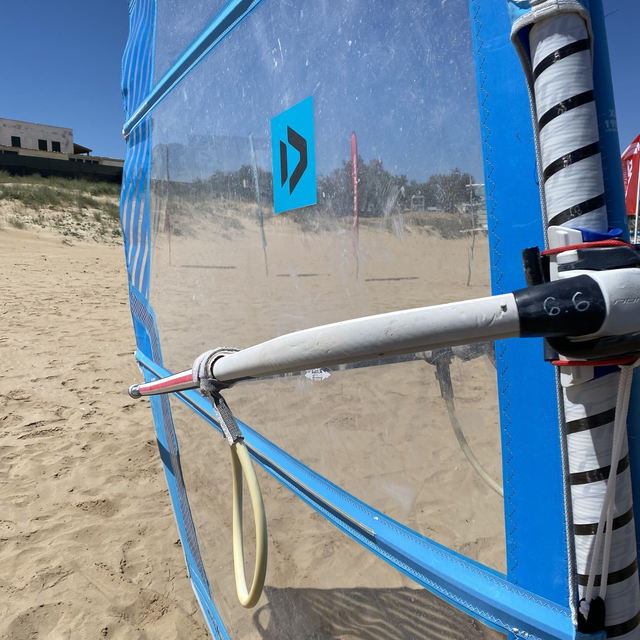 Used with a repair at the bottom of the sail.